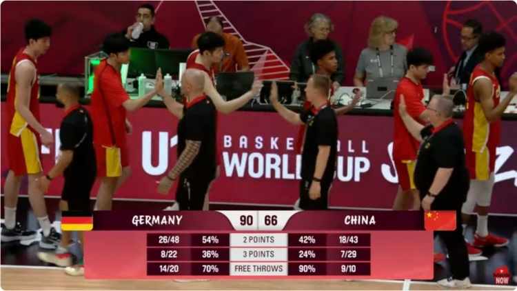比赛开始,双方短暂相持,德国男篮内外开花,轰出17-4的进攻高潮确立两位数优势,侯孟泽压哨艰难破荒,郇斯枫也暴扣得手,次节朱正挺身而出,得分助攻一肩挑带队回敬17-4的攻击波一度追到3分,德国队进攻回暖,打出16-4的攻势以49-34领先中国队结束上半场。易边再战,德国队牢牢占据场上主动,内外开花一举将分差拉开到20分以上,中国队强攻内线苦苦追赶,末节中国队内外开花拿分,但德国稳扎稳打继续扩大优势,中国男篮大势已去无力回天。最终,中国男篮U19以66-90不敌德国,遭遇2连败。