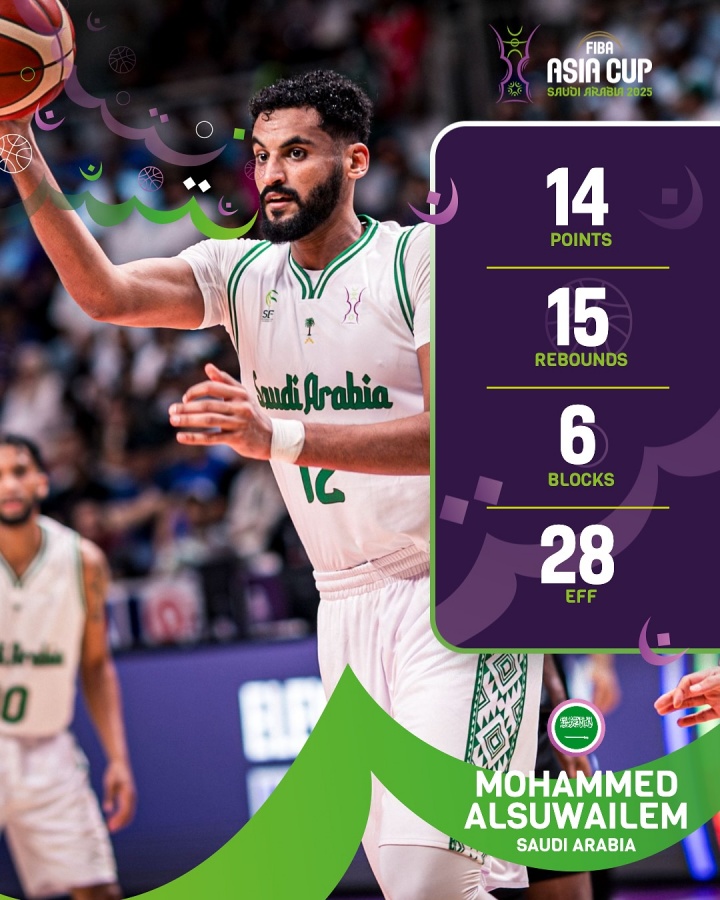 沙特归化球员拉赫曼出战37分21秒,20投8中,三分11中3,罚球7中6,得到25分8篮板7助攻2抢断,沙特2米08中锋阿尔苏韦莱姆出战30分17秒,11投5中,罚球4中4,砍下14分15篮板1助攻6盖帽。沙特男篮上次在亚洲杯赢球已是2013年(13-14名排位赛)。