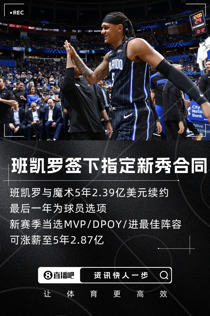 因为魔术给班凯罗的是一份“指定新秀”的提前续约合同,因此,如果班凯罗在2025-26赛季当选MVP或夺得DPOY或入选年度最佳阵容,他的指定新秀提前续约合同金额还将增加数千万,总薪资将达到5年2.87亿美元。
