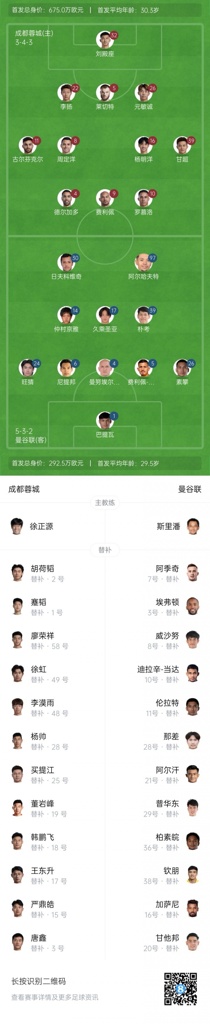 成都蓉城替补:1-蹇韬、2-胡荷韬、3-唐鑫、17-王东升、18-韩鹏飞、19-董岩鋒、28-杨帅、49-徐虹、15-严鼎皓、25-木热合买提江-莫扎帕、58-廖荣祥、48-李漠雨