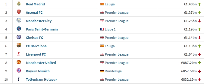 阿森纳今夏已进行了苏维门迪、埃泽、约克雷斯等多笔重量引援。据德转统计,阿森纳全队身价目前已达到13.7亿欧,仅次于14亿欧的皇马位居世界第二。
